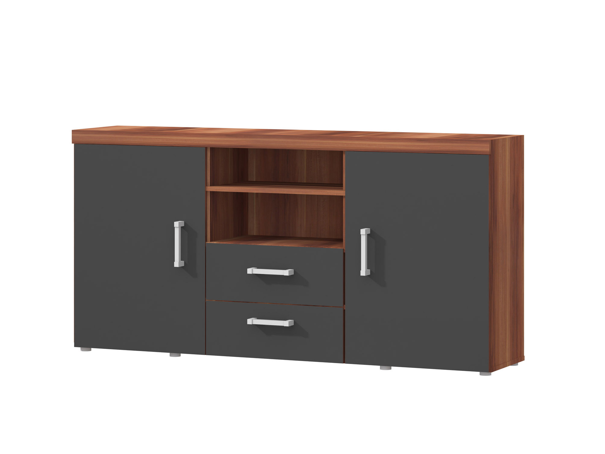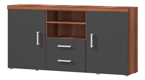 Komoda Salford S5 (Švestka + Grafit) o výšce 80 cm a hloubce 45 cm je moderním kusem nábytku, který skvěle doplní Váš obývací pokoj nebo ložnici. Je vyrobena z laminované dřevotřísky (LTD) o tloušťce 16 mm a obsahuje dvě zásuvky a dvě otevřené poličky uprostřed, jakož i dvoje dvířka na stranách. Barevné provedení ve švestkové a grafitové kombinaci dodává této komodě stylový vzhled. Úchyty jsou z plastu a panty jsou kovové. Modelová řada Salford kombinuje tradiční design s moderními prvky a nabízí praktické regály na knihy a dekorace, elegantní vitríny, poličky a TV stolek s místem pro audio/video zařízení i pro Váš televizor a dekorace. Pokud hledáte elegantní nábytek, modelová řada Salford je tou správnou volbou pro Vás.