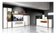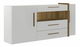 Široká komoda se třemi zásuvkami a dvěma dvířky. Moderní design je doplněn o dekorativní lištu v provedení dub riviera. Bílé barevné provedení je vhodné zejména do tmavších prostor, které prosvětlí a oživí. Dvířka a zásuvky mají systém tichého dojezdu.