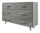 Zásuvky se otevírají pomocí podlouhlých dřevěných úchytů. Stabilitu komodě dodávají dřevěné nožičky.