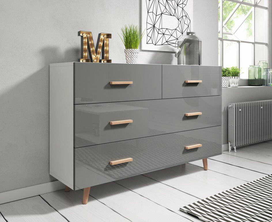 Komoda Santos 4 (šedý lesk + bílá matná)