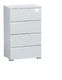 Elegantní komoda, která vás zaujme čistým designem a moderním stylem. Oživí prostory vašeho obývacího pokoje. Zajímavostí jsou vyřezané úchyty přímo v rozích zásuvek. Komoda má čtyři zásuvky. Barevné provedení komody je korpus bílý a fronty v lesku.