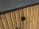 Vitrína Saul je vyrobena z laminované desky nejvyšší kvality, která je odolná vůči poškrábání a vlhkosti. Moderní lamely dodávají vitríně Saul dokonalý šarm a eleganci. Dostupná ve více barevných provedeních.