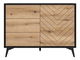 Stylové uspořádání podkroví a moderních interiérů doplňuje komoda na nožičkách. Dřevěný vzor v kombinaci s tmavým rámem umocňuje elegantní vzhled nejen komody, ale celého dekoru. Zajímavým akcentem je zde ozdobné frézování přední strany. Tento malý detail je charakteristickým prvkem celé kolekce nábytku. Praktickou výhodou komody se skříňkou a šuplíky je úložná kapacita. Každá přihrádka má prostornou oblast, která umožňuje skrýt různé druhy předmětů. Otevírání pomocí mechanismu "Push to open" poskytuje snadný a rychlý přístup k věcem uloženým uvnitř.
