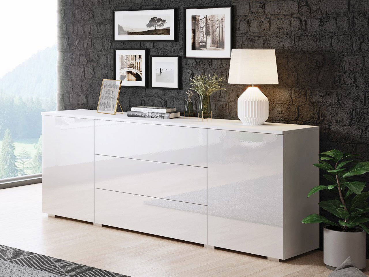 Komoda se zásuvkami Nova -150 (bílá + lesk bílý)