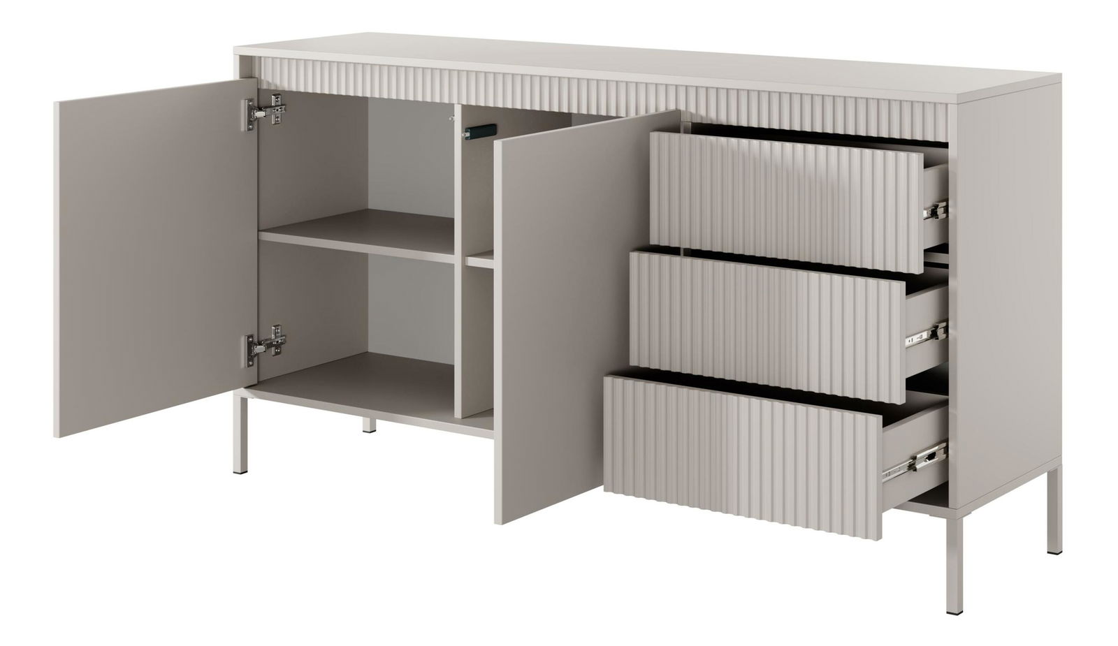 ZobrazitKomoda Sesen II (béžová) je štýlovým a praktickým doplnkom do vašej domácnosti. Vyrobená z laminovanej drevotriesky s MDF hrúbkou 16 mm po stranách aj na prednej časti, ponúka odolnosť a pevnosť. Komoda disponuje 3 zásuvkami a 1 dvierkami, poskytujúcimi dostatok úložného priestoru. Systém otvárania bez úchytiek na báze stlačenia dodáva moderný a čistý vzhľad. Béžové kovové nožičky zabezpečujú stabilitu a elegantný vzhľad. Táto komoda kombinuje funkčnosť a estetiku, ideálna pre každodenné použitie.