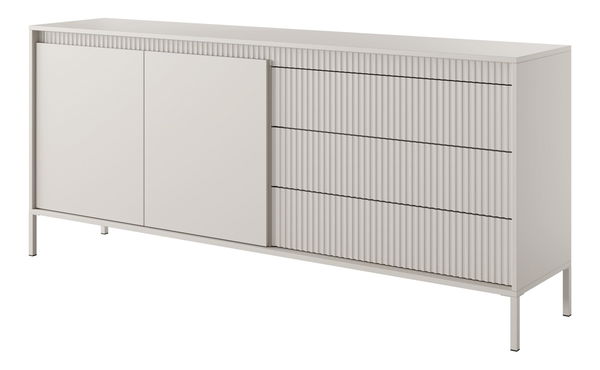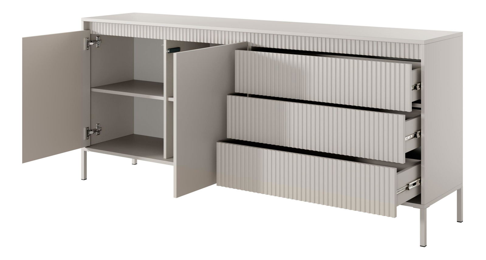 ZobrazitKomoda Sesen III (béžová) je elegantným a praktickým doplnkom vášho interiéru. Vyrobená z laminovanej drevotriesky s MDF hrúbkou 16 mm po stranách a na prednej časti, zaručuje odolnosť a pevnosť. Systém otvárania bez úchytiek na báze stlačenia prispieva k modernému a čistému vzhľadu. Komoda má 3 zásuvky a 2 dvierka, poskytujúce dostatok úložného priestoru. Béžové kovové nožičky zabezpečujú stabilitu a štýlový vzhľad. Táto komoda je ideálna pre moderné domácnosti, kde estetika a funkčnosť idú ruka v ruke.
