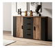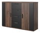 Komoda Signat Typ 26 (černá + dub flagstaff + měděná nitka) je stylový nábytek, který bude skvělým doplňkem do každé moderní ložnice nebo obývacího pokoje. S výškou 94,1 cm a hloubkou 40 cm nabízí dostatek úložného prostoru. Komoda má dvě poličky skryté za dvířky a čtyři šuplíky. Materiál ze kterého je komoda vyrobena je laminovaná deska, která zaručuje odolnost a dlouhou životnost produktu. Úchytky jsou vyrobeny z plastu. Černá barva v kombinaci s dubovým dřevěným dekorem a měděnou nitkou dodává komodě eleganci a sofistikovaný vzhled. Komoda Signat Typ 26 je praktický a moderní nábytek, který se bude hodit do každého interiéru.