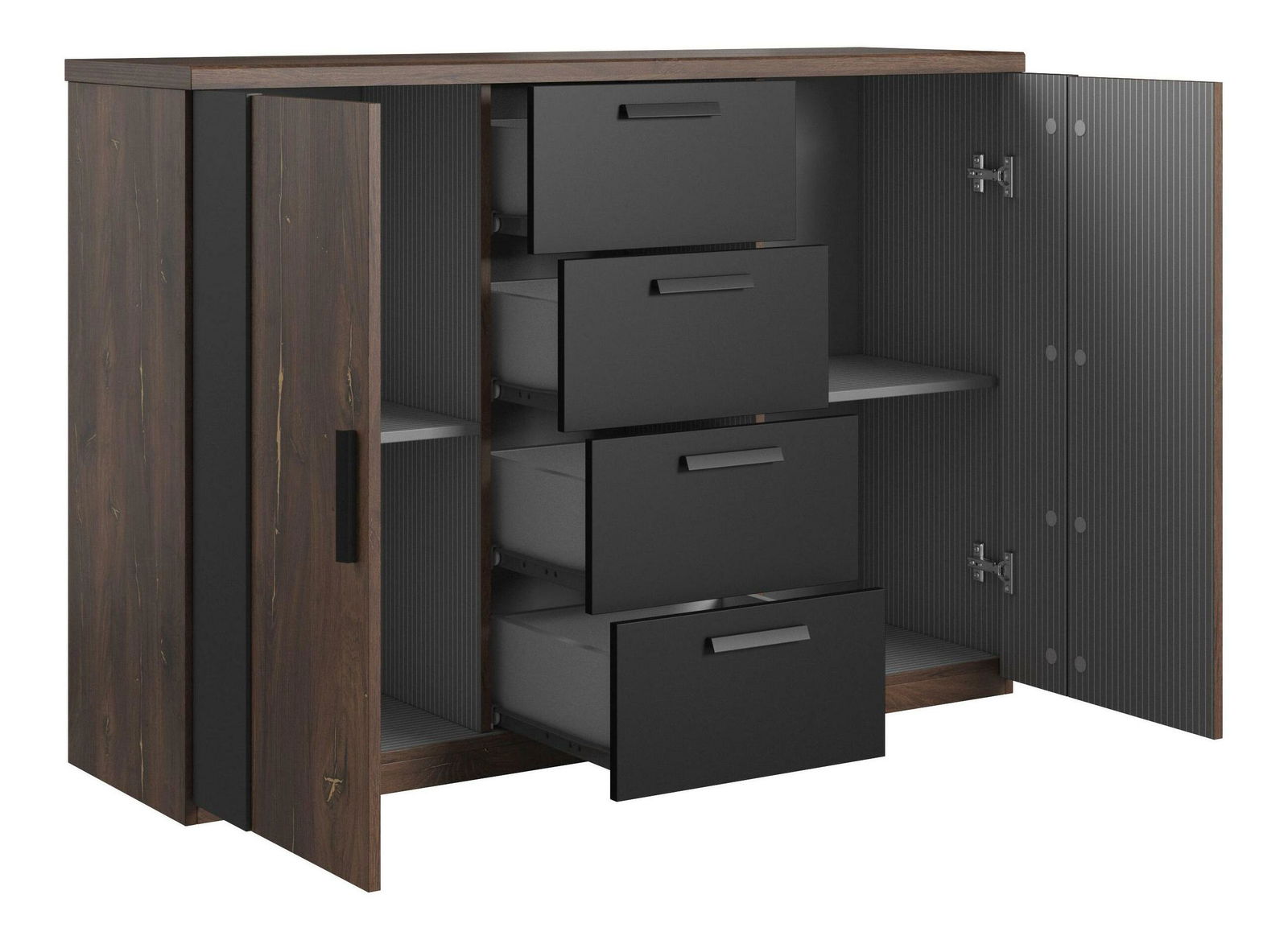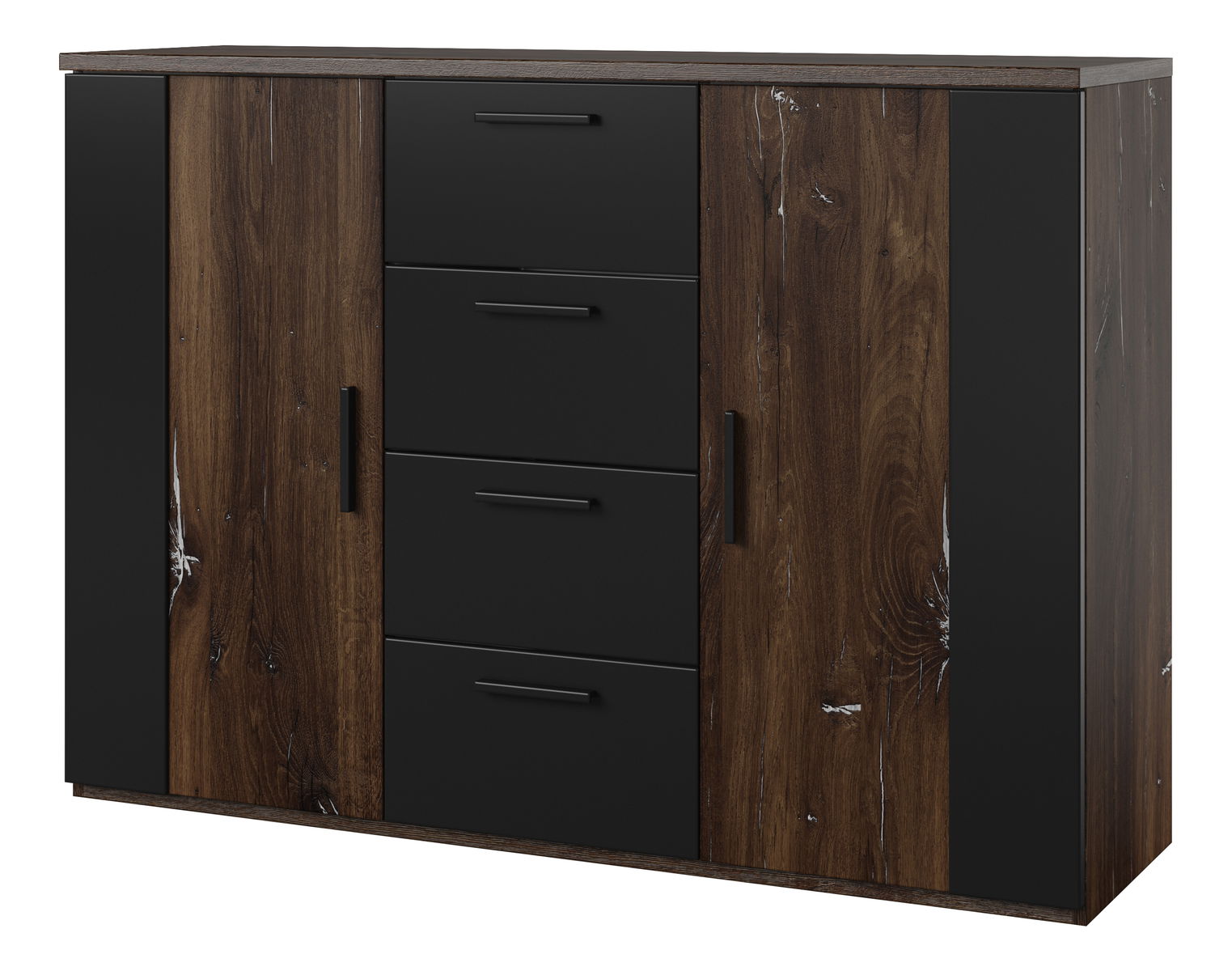 Komoda Signat Typ 26 (černá + dub artisan + stříbrná)