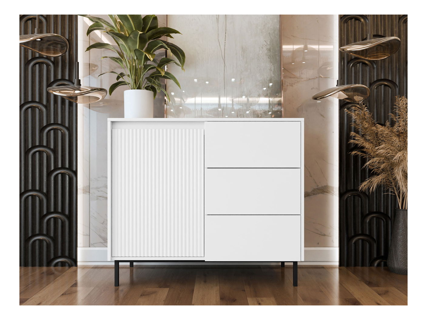 ZobrazitPokojová komoda Somkera 1D3SZ je vkusná nabídka plná elegance a třídy. Vyniká moderním designem. Frézovaná čela dominují designu interiéru, proto zde nemohla chybět. V kombinaci se subtilními nožičkami vytváří skvělou nabídku do obývacího pokoje, ložnice a předsíně. Zajímá vás, jestli se bude hodit ke stylu vašeho pokoje? Nebojte se! Komoda Somkera 1D3SZ na nožičkách zapadne do každého stylu! Model nabízí také dostatek prostoru pro organizaci. Do tří prostorných zásuvek a dvou prostorných přihrádek se vejde spousta věcí. Široký vrch vám umožní vystavit oblíbené dekorace, květiny a suvenýry z dovolené.