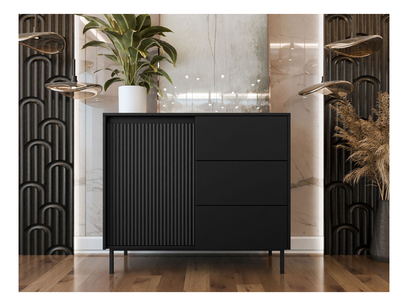 ZobrazitPokojová komoda Somkera 1D3SZ je vkusná nabídka plná elegance a třídy. Vyniká moderním designem. Frézovaná čela dominují designu interiéru, proto zde nemohla chybět. V kombinaci se subtilními nožičkami vytváří skvělou nabídku do obývacího pokoje, ložnice a předsíně. Zajímá vás, jestli se bude hodit ke stylu vašeho pokoje? Nebojte se! Komoda Somkera 1D3SZ na nožičkách zapadne do každého stylu! Model nabízí také dostatek prostoru pro organizaci. Do tří prostorných zásuvek a dvou prostorných přihrádek se vejde spousta věcí. Široký vrch vám umožní vystavit oblíbené dekorace, květiny a suvenýry z dovolené.