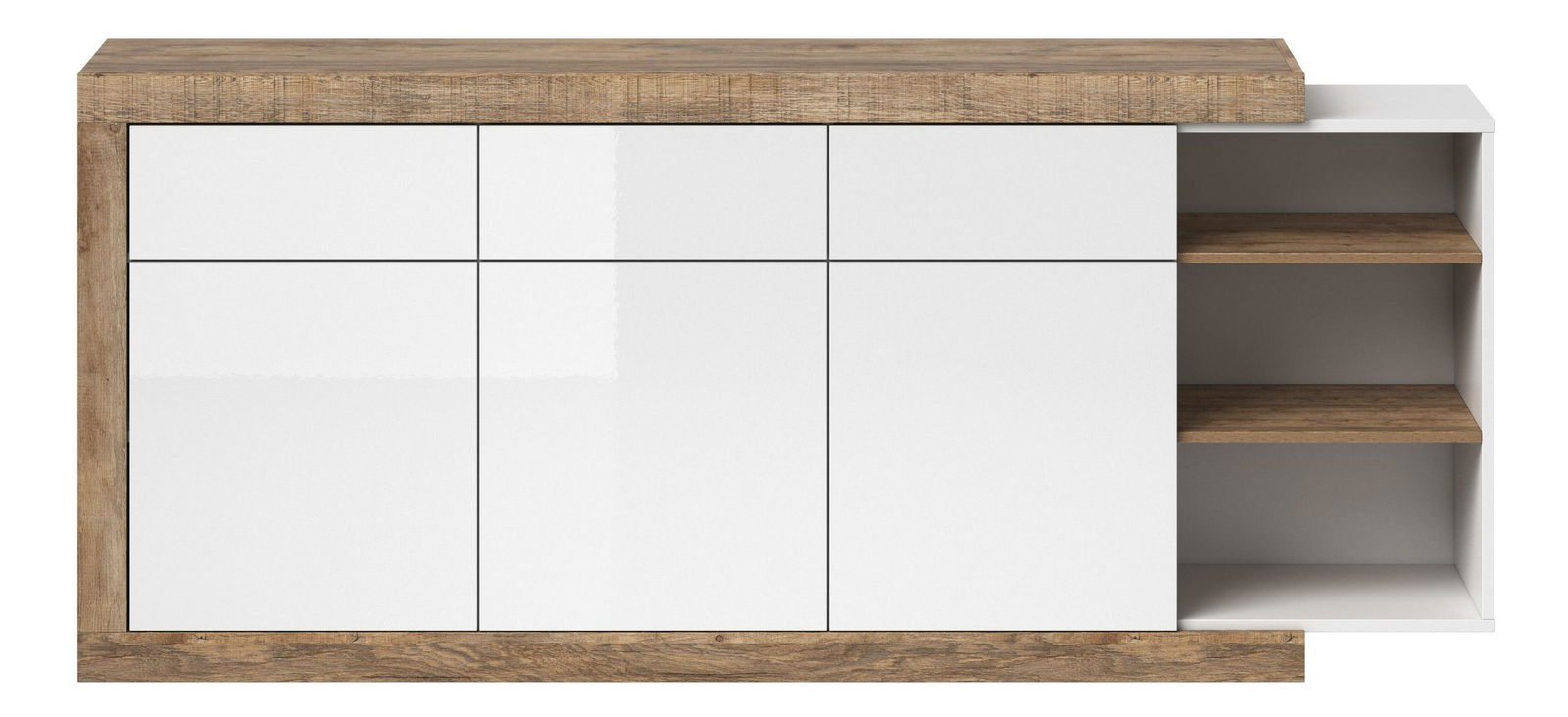 Komoda Sophia Typ 25 (dub samdal + bílá + lesk bílý)