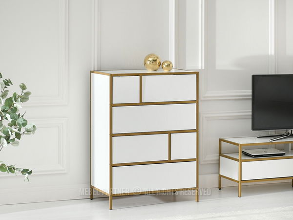 Komoda Soren Kom (bílé dřevo + zlatá) *výprodej