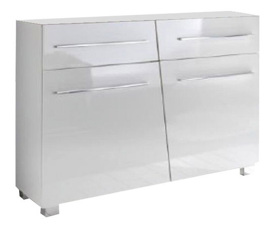 Komoda se svěžím moderním designem, která ozvláštní Vaše interiéry. Výrazným prvkem jsou diagonálně rozděleny zásuvky a dvířka. Komoda má dvě zásuvky a dvoje dvířka. Barevné provedení komody je extra vysoký lesk bílý.