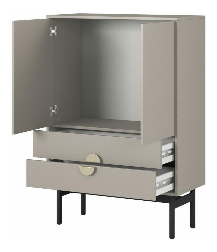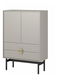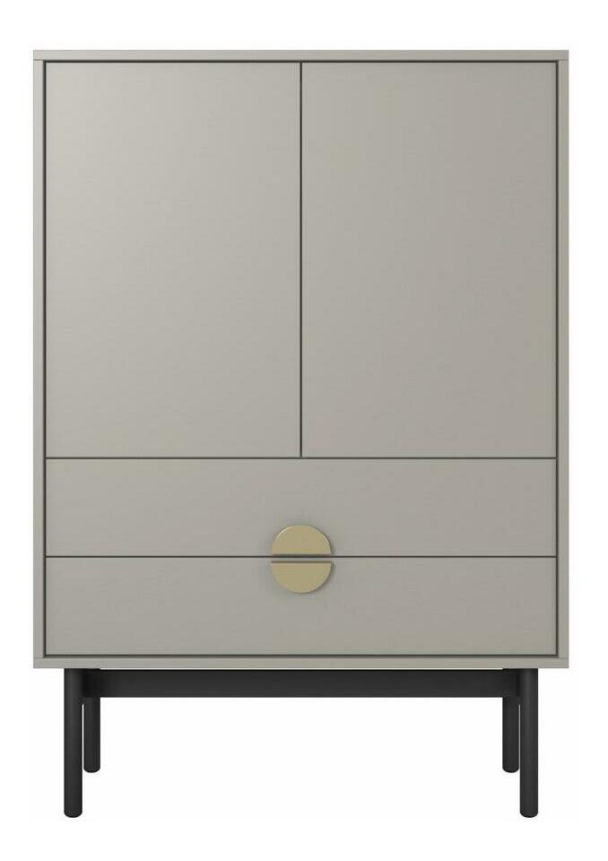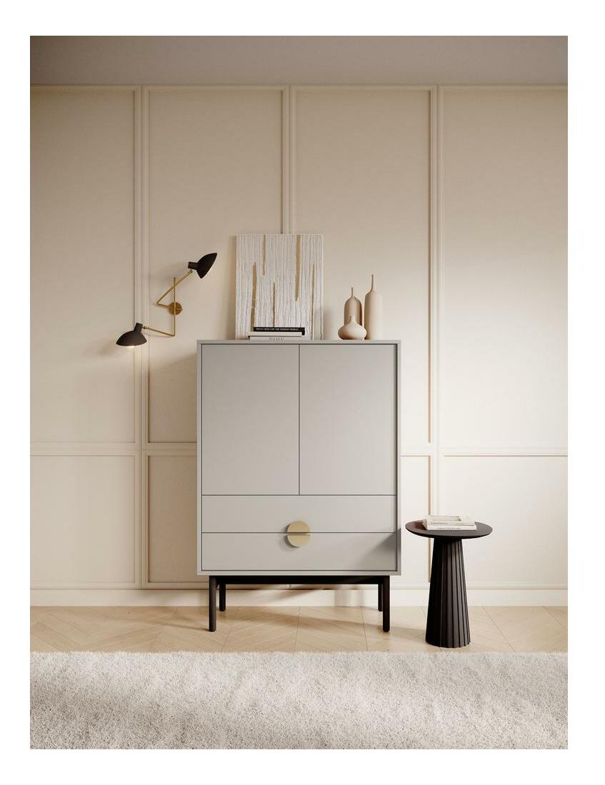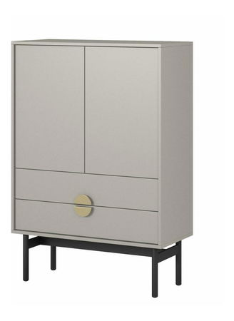 Chcete udělat metamorfózu ve svém interiéru? Máte rádi originální řešení a jednoduché formy nábytku? Výběrem naší kolekce vnesete do interiéru harmonii a eleganci a potěšíte své hosty Vysoká komoda s jedinečným designem v elegantní béžové barvě dokonale zapadne do moderních interiérů. Je vyroben z kvalitní laminované dřevotřískové desky, která zajistí dlouhodobé a bezproblémové používání. Jeho charakter obohacuje pevný rám vyrobený z oceli, který činí nábytek nejen odolným, ale dodává mu i industriální šarm. Zlaté úchytky tvořící kruh jsou zase nejen praktickým prvkem, který usnadňuje otevírání, ale dodávají celé skříňce eleganci a jemný lesk. Tento malý, ale rafinovaný detail odlišuje nábytek a dodává mu mírně luxusní akcent. Komoda byla navržena s ohledem na funkčnost, proto má zásuvky na menší předměty a uzavřený výklenek na velké boxy nebo elektronická zařízení. Kombinace nevšední barvy s černým rámem a zlatými úchyty vytváří harmonický a moderní celek, který dokonale zapadne do různých interiérových aranžmá a dodá jim jedinečný charakter. Tato komoda je nejen praktickým úložným řešením, ale také designovým prvkem, který ozdobí a zvýrazní individuální styl každé místnosti Detaily produktu: korpus a čela z laminované desky Grey Taupe U750 ST9, odolné vůči vlhkosti, vysoké teplotě. a škrábanců , rám z černé prášk lakované oceli, která usnadňuje udržování pořádku pod nábytkem, úchyty zlaté barvy z broušené oceli.