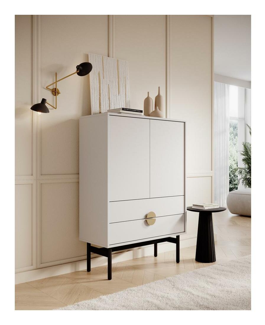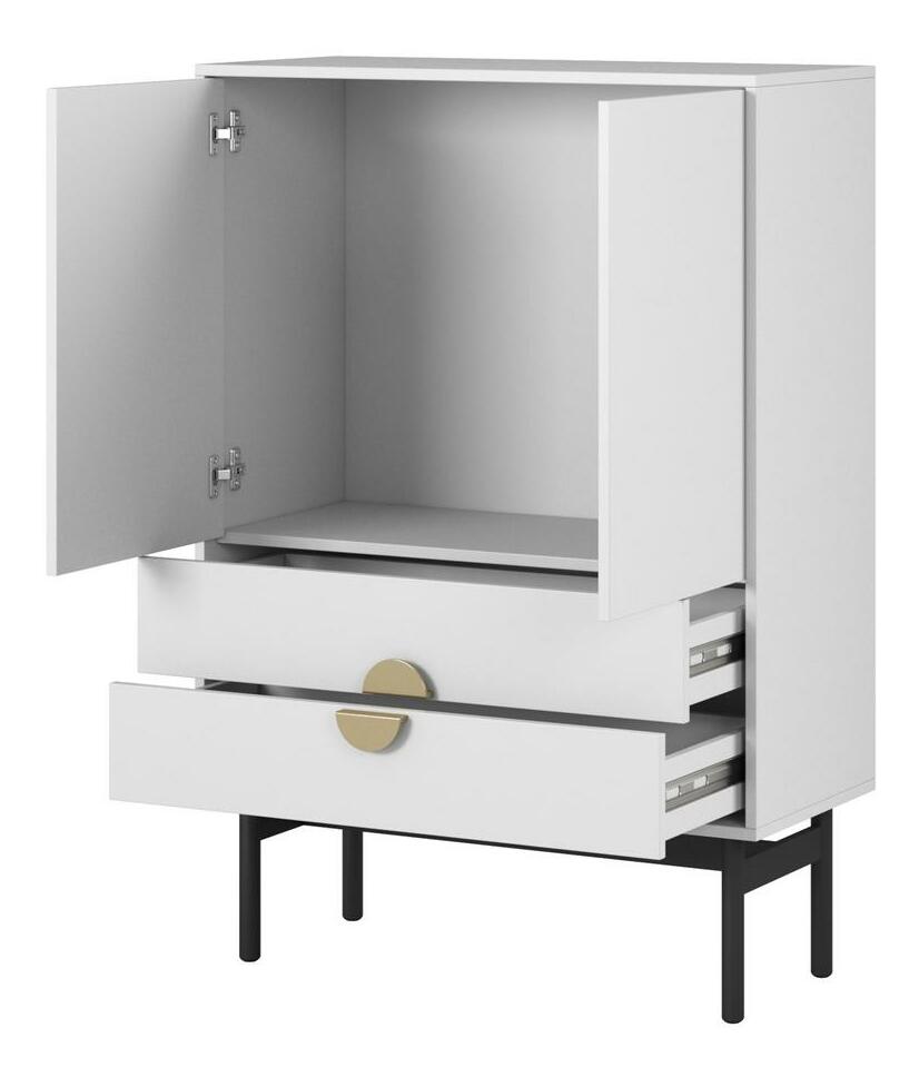 ZobrazitChcete udělat metamorfózu ve svém interiéru? Máte rádi originální řešení a jednoduché formy nábytku? Výběrem naší kolekce vnesete do svého interiéru harmonii a eleganci a potěšíte své hosty Vysoká komoda s jedinečným designem v elegantní bílé barvě dokonale zapadne do moderních interiérů. Je vyroben z kvalitní laminované dřevotřískové desky, která zajistí dlouhodobé a bezproblémové používání. Jeho charakter obohacuje pevný rám vyrobený z oceli, který činí nábytek nejen odolným, ale dodává mu i industriální šarm. Zlaté úchytky tvořící kruh jsou zase nejen praktickým prvkem, který usnadňuje otevírání, ale dodávají celé skříňce eleganci a jemný lesk. Tento malý, ale rafinovaný detail odlišuje nábytek a dodává mu mírně luxusní akcent. Komoda byla navržena s ohledem na funkčnost, proto má zásuvky na menší předměty a uzavřený výklenek na velké boxy nebo elektronická zařízení. Kombinace nevšední barvy s černým rámem a zlatými úchyty vytváří harmonický a moderní celek, který dokonale zapadne do různých interiérových aranžmá a dodá jim jedinečný charakter. Tato komoda je nejen praktickým úložným řešením, ale také designovým prvkem, který ozdobí a zvýrazní individuální styl každé místnosti Detaily produktu: korpus a čela z laminované desky Bílé korpus 0110 SM, odolný vůči vlhkosti, vysoké teplotě. a škrábanců , rám z černé prášk lakované oceli, která usnadňuje udržování pořádku pod nábytkem, úchyty zlaté barvy z broušené oceli.
