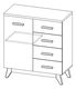 Komoda modelové řady Sverdon má 4 zásuvky a skříňku s poličkou, takže umožňuje přehledně poskládat oblečení, doplňky ale i jiné věci z domácnosti, které potřebujete uskladnit. Komoda je oblíbený nábytek do ložnice, předsíně nebo obývacího pokoje, protože je velmi praktická, univerzální a v tomto provedení i stylová. Pokud potřebujete více úložných prostorů, kombinujte komodu Sverdon s regály nebo skříňkami této modelové řady.