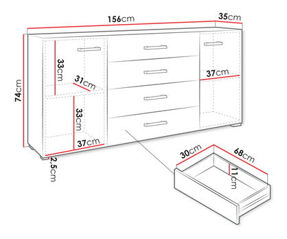 Komoda Teratino 2D4SZ (bílá)