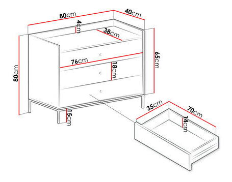 Pokojová komoda Tezarta 3SZ je výrazem minimalistického přístupu k interiérovému designu. Styl nábytku je jednoduchý, díky čemuž je vhodný do každého interiéru obývacího pokoje nebo ložnice. Vnitřní prostor komody byl navržen s ohledem na pohodlné ukládání. Tři prostorné výsuvné přihrádky poskytují prostor pro oblečení, prádlo, drobné doplňky a dokonce i dokumenty nebo boty. Komoda splní potřeby pro uložení nejrůznějších předmětů. Základem korpusu nábytku je pevný kovový rám. Jemné kulaté knoflíky podtrhují decentní styl komody do obývacího pokoje.