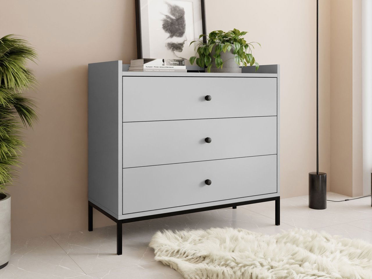 Komoda Tezarta 3SZ (světle šedá + černá)