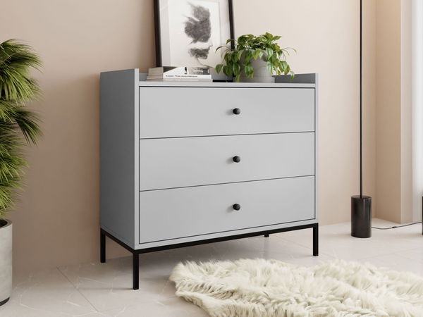 ZobrazitPokojová komoda Tezarta 3SZ je výrazem minimalistického přístupu k interiérovému designu. Styl nábytku je jednoduchý, díky čemuž je vhodný do každého interiéru obývacího pokoje nebo ložnice. Vnitřní prostor komody byl navržen s ohledem na pohodlné ukládání. Tři prostorné výsuvné přihrádky poskytují prostor pro oblečení, prádlo, drobné doplňky a dokonce i dokumenty nebo boty. Komoda splní potřeby pro uložení nejrůznějších předmětů. Základem korpusu nábytku je pevný kovový rám. Jemné kulaté knoflíky podtrhují decentní styl komody do obývacího pokoje.