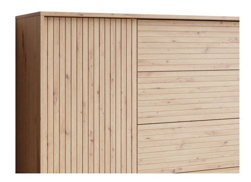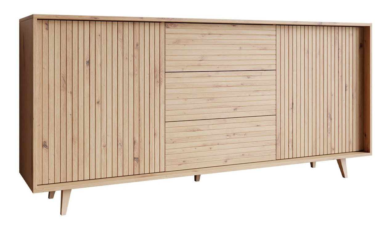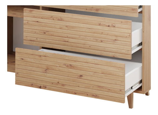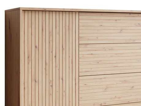 ZobrazitVytvořte ve svém interiéru přirozenou atmosféru. Široká komoda Treksona 2D3SZ je model, se kterým vytvoříte interiér plný harmonie a klidu. Ideálně zapadne do mnoha zajímavých designů, a to jak do těch s nádechem klasiky, tak i do modernějších aranžmá. Představený model je kombinací praktických uzavřených polic s praktickými šuplíky. Vnitřní prostor komody je ideálním základem pro uložení věcí, které používáte každý den, nebo těch, které používáte příležitostně. Model osazený na nožičkách nemá žádné úchyty a přístup dovnitř usnadňuje systém push-to-open.