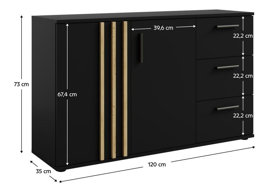 Komoda Tullin 3 (černá + dub artisan)
