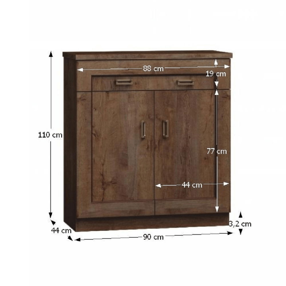 Komoda Tureis Typ T2 o výšce 110 cm a hloubce 44 cm je ideálním kusem nábytku pro milovníky rustikálního stylu. Tento sektorový nábytek z modelové řady Tedy je vhodný pro zařízení každé místnosti v domácnosti. Komoda Tureis má masivnější vzhled a je doplněna většími kovovými úchyty na dvířkách a šuplících. Je vyrobena z kvalitního materiálu a je velmi pevné konstrukce. Barevné provedení komody je dub lefkas, což jí dodává příjemný a přírodní vzhled. Komoda Tureis je ideální pro uložení různých věcí, jako jsou knihy, časopisy, oblečení nebo dokonce nádobí a sklenice. Díky svému nadčasovému rustikálnímu designu a kvalitě je Tureis Typ T2 skvělou volbou pro každého, kdo hledá spolehlivý a krásný kus nábytku pro svůj domov.
