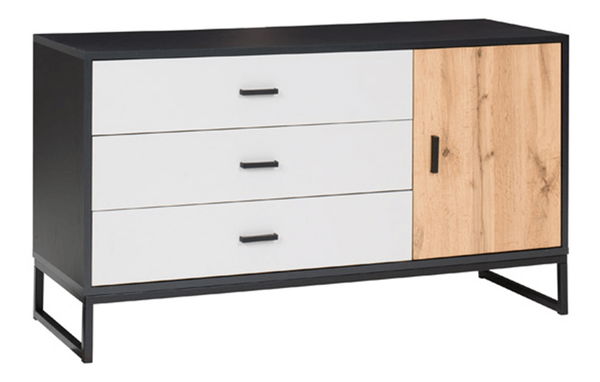 Komoda typ 6 Marlana (černá + dub wotan + šedá)