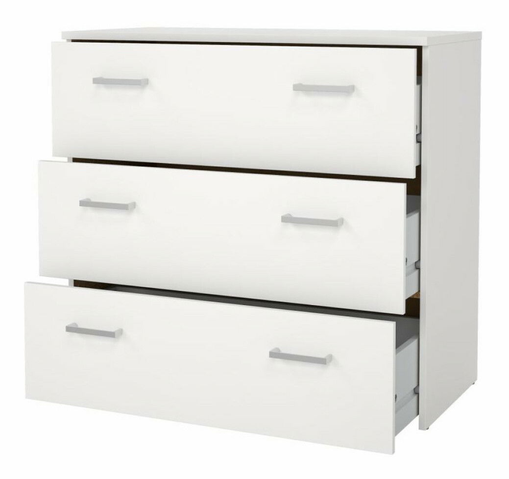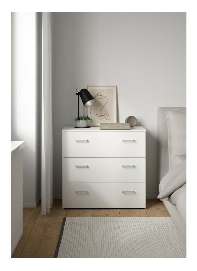 Komoda Variar 3 (bílá) o výšce 69,9 cm a hloubce 36 cm je moderní a praktický nábytek, který se skvěle hodí do ložnic, obývacích pokojů, pracoven nebo síní. S trojicí zásuvek s jednoduchými úchyty vám poskytne dostatek úložného prostoru pro vaše věci. S tloušťkou materiálu korpusu 12 mm a vrchního plátu 15 mm, tato komoda je pevná a stabilní. Komoda Variar 3 (bílá) je vyrobena z DTD laminované desky a dostupná je v bílém provedení. Rozměry komody jsou 74,1x36x69,9 cm a rozměry šuplíku jsou 71x22 cm. Komoda se dodává v demontu, ale je snadno sestavitelná. Tato komoda je dokonalým doplňkem vašeho interiéru.