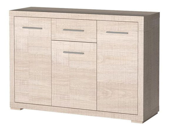 ZobrazitKomoda se třemi dvířky, za kterými je po jedné polici. Nábytek má také jednu zásuvku. To umožňuje dobrou organizaci a ukládání jednotlivých předmětů. Je doplněna kovovými úchytkami. Hodí se do obývacího pokoje, ložnice a předsíně, jakož i do kanceláře nebo pracovny.
