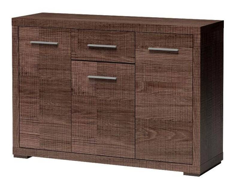 ZobrazitKomoda se třemi dvířky, za kterými je po jedné polici. Nábytek má také jednu zásuvku. To umožňuje dobrou organizaci a ukládání jednotlivých předmětů. Je doplněna kovovými úchytkami. Hodí se do obývacího pokoje, ložnice a předsíně, jakož i do kanceláře nebo pracovny.