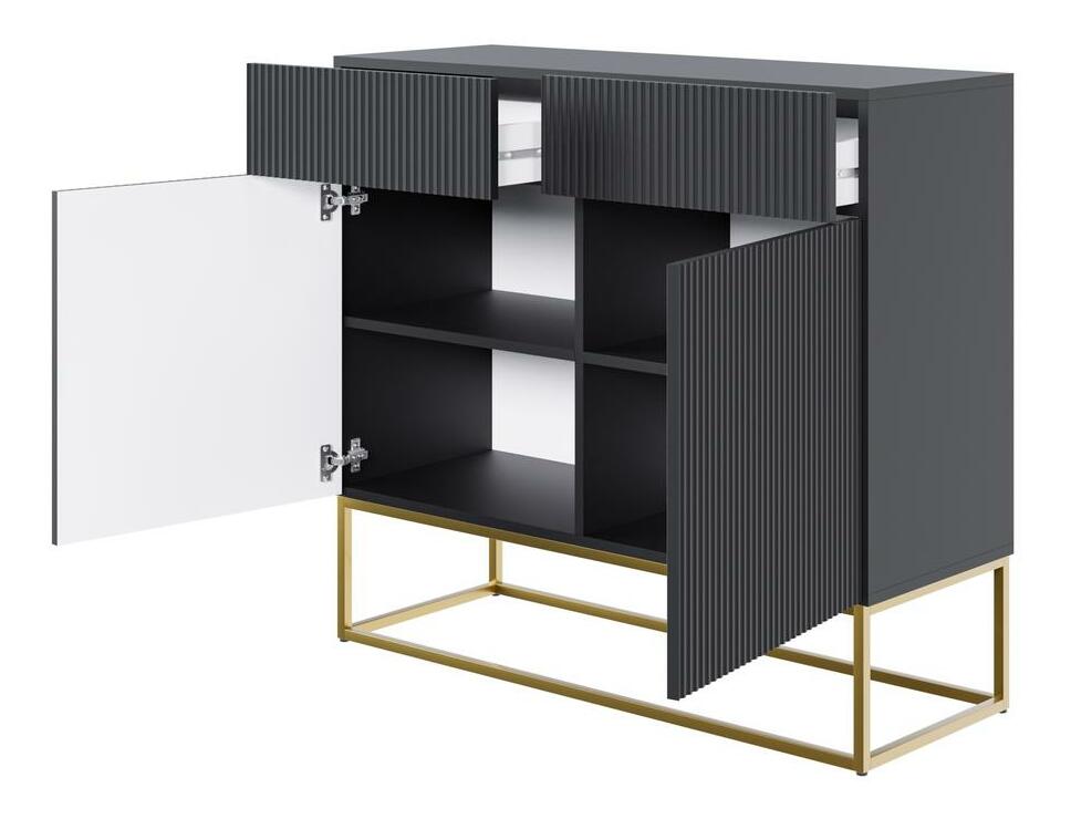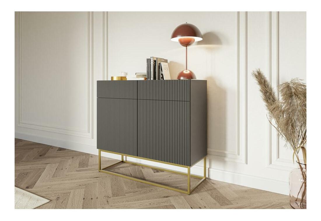 ZobrazitZařizujete si svůj vysněný byt a na dokončení díla potřebujete ještě stylový nábytek? V takové situaci vám navrhneme naši jedinečnou kolekci – nábytek, který lhostejně neprojdete Komoda je spojením minimalismu s designérským akcentem v podobě módních lamel věc jedinečný charakter – v kombinaci s velkými barevnými rostlinami bude nábytek vypadat opravdu skvěle. Za dvířky jsou čtyři prostorné výklenky, do kterých se vejde náhradní oblečení nebo dokumenty. V horní části jsou dva šuplíky, kde si můžete uložit drobné doplňky nebo doplňky. Chcete-li si pokoj personalizovat, důležité rodinné suvenýry či fotografie si nepochybně najdou své místo na široké desce skříňky. Další výhodou nábytku jsou pevné nohy v podobě rámu z prášku lakované oceli, které mu poskytují maximální stabilitu a zároveň jsou stylovým doplňkem do obývacího pokoje. Detail produktu: korpus skříně je vyroben z 16 mm laminovaná deska Kronospan 190 PE, která je odolná vůči vlhkosti a poškrábání, což zajišťuje dlouhé používání, lišty na přední straně jsou vyrobeny z MDF, čela skříněk se otevírají metodou push to open, nohy jsou vyrobeny z práškového- potažená ocel, s kluzáky zabraňujícími poškrábání podlahy.