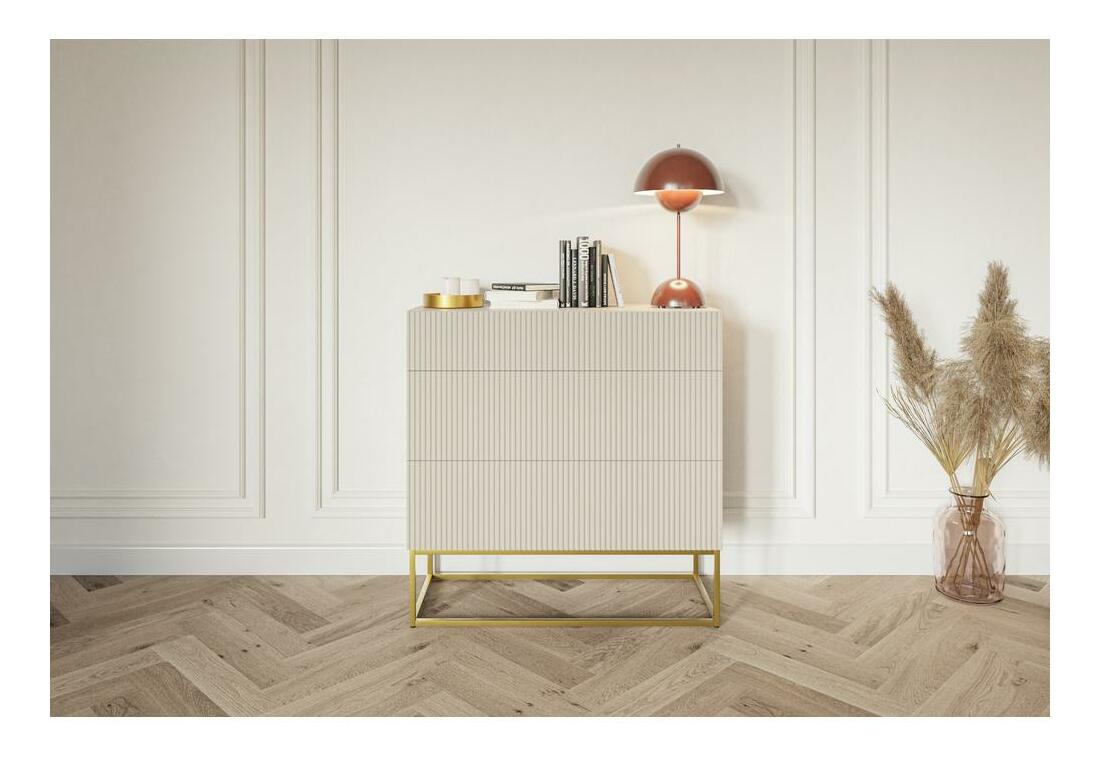 ZobrazitZařizujete si svůj vysněný byt a na dokončení díla potřebujete ještě stylový nábytek? V takové situaci Vám představíme naši jedinečnou kolekci – nábytek, který lhostejně neprojdete Komoda se šuplíky je spojením minimalismu s designérským akcentem v podobě módních lamel celá věc jedinečný charakter – v kombinaci s velkým, S barevnými rostlinami bude nábytek vypadat opravdu skvěle. Nábytek má tři prostorné zásuvky, které budou skvělým místem pro kancelářské potřeby, dokumenty nebo náhradní ručníky. Chcete-li si pokoj personalizovat, důležité rodinné suvenýry či fotografie si nepochybně najdou své místo na široké desce skříňky. Další výhodou nábytku jsou pevné nohy v podobě rámu z prášku lakované oceli, které mu poskytují maximální stabilitu a zároveň jsou stylovým doplňkem do obývacího pokoje. Detail produktu: korpus skříně je vyroben z 16 mm laminovaná deska U750 ST9 Grey Taupe, která je odolná vůči vlhkosti a poškrábání, což zajišťuje dlouhé používání, lamely na přední straně jsou vyrobeny z MDF, zásuvky se otevírají metodou push to open, nohy z oceli s práškovým nástřikem, s klouže, aby se zabránilo poškrábání podlahy.
