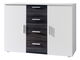 Třídílná komoda v moderním designu Vám umožní uspořádat si oblečení tak, abyste v něm měli přehled. Komoda obsahuje dvě skříňky po stranách a čtyři zásuvky uprostřed. V skříňkách se nachází polička, která nabízí dostatek úložného prostoru. Na vrch komody si můžete umístit dekorativní předměty, lampičku nebo vázu s květinami.