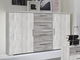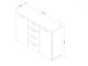 Třídílná komoda v moderním designu Vám umožní uspořádat si oblečení tak, abyste v něm měli přehled. Komoda obsahuje dvě skříňky po stranách a čtyři zásuvky uprostřed. V skříňkách se nachází polička, která nabízí dostatek úložného prostoru. Na vrch komody si můžete umístit dekorativní předměty, lampičku nebo vázu s květinami.