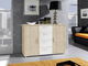 Třídílná komoda v moderním designu Vám umožní uspořádat si oblečení tak, abyste v něm měli přehled. Komoda obsahuje dvě skříňky po stranách a čtyři zásuvky uprostřed. V skříňkách se nachází polička, která nabízí dostatek úložného prostoru. Na vrch komody si můžete umístit dekorativní předměty, lampičku nebo vázu s květinami.