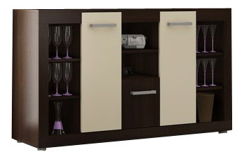 Moderní komoda je vyráběna až v osmi barevných provedeních, čímž se skvěle hodí k ostatnímu nábytku ve Vašem obývacím pokoji nebo jídelně. Kromě otevřených odkládacích prostorů s poličkami obsahuje i části uzavřené dvířky a jednu zásuvku. Je doplňkem k obývací stěně modelové řady Viki. Pokud potřebujete více úložného prostoru, je možné si přiobjednat i šatní skříň ve stejné barevné kombinaci.