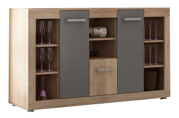 Moderní komoda je vyráběna až v osmi barevných provedeních, čímž se skvěle hodí k ostatnímu nábytku ve Vašem obývacím pokoji nebo jídelně. Kromě otevřených odkládacích prostorů s poličkami obsahuje i části uzavřené dvířky a jednu zásuvku. Je doplňkem k obývací stěně modelové řady Viki. Pokud potřebujete více úložného prostoru, je možné si přiobjednat i šatní skříň ve stejné barevné kombinaci.