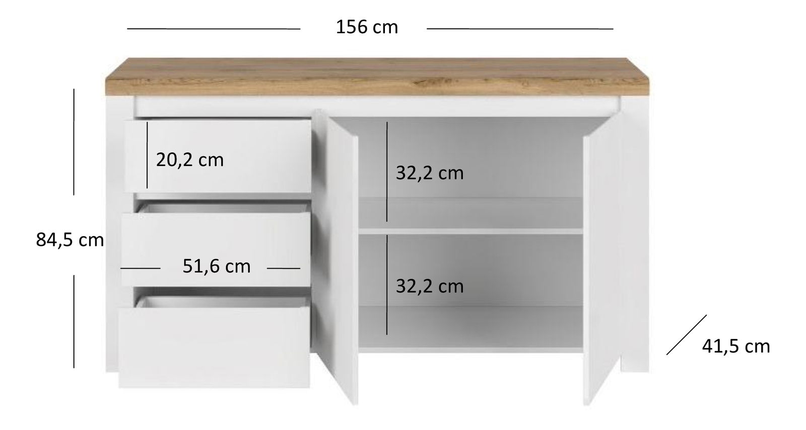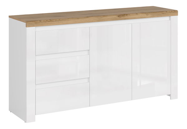 Komoda Vina 2d3s (bílá lesklá + dub wotan)