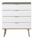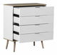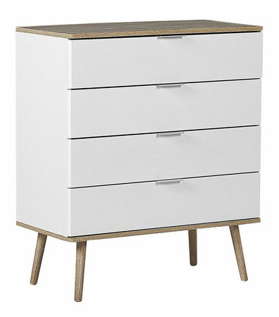 Tato komoda je vynikající volbou, hledáte-li kus nábytku, který poskytuje praktický úložný prostor a zároveň se hodí do různých interiérů. Trvanlivost nábytku zajišťují dřevěné nohy, čelo z MDF desky a další části z dřevotřískové desky v bílé barvě. Minimalistická komoda se šuplíky bude perfektní na oblečení, kancelářské potřeby a ostatní drobné předměty, což vám umožní udržovat pořádek v místnosti.