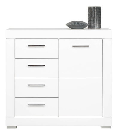 Elegantní dvoudílná komoda se 4 zásuvkami nalevo a dvířky na pravé straně.
