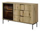 Komoda Wilsire II (dub coast evoke) je stylovým a praktickým doplňkem vašeho interiéru. Je vyrobena z laminované dřevotřísky a temperovaného skla, s MDF tloušťkou 16 mm po stranách a 18 mm na přední části, což zaručuje pevnost a odolnost. Komoda disponuje 2 dvířky a 3 zásuvkami, které poskytují dostatek úložného prostoru. Černé kovové úchyty a nožičky přidávají moderní vzhled a stabilitu. Tato komoda kombinuje estetiku a funkčnost, ideální pro moderní domácnosti.