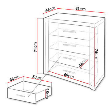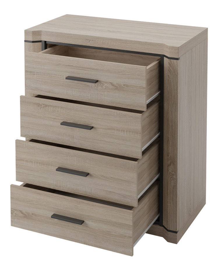ZobrazitKomoda je ideální volbou pro ty, kteří hledají pohodlí a styl. Komoda Xavier XV-4 vypadá stylově a moderně, a to díky pozornosti, která je věnována detailům. Můžete to vidět například u tvarovaných prvků, které dodávají komodě originální design. Dalším dekorativním prvkem jsou vložky v tmavé barvě a tvarované úchyty. Barevné provedení celkově dotváří ojedinělý design. Komoda Xavier je vyrobena z vysoce kvalitních komponentů, hlavně z laminované lepenky. Má čtyři prostorné zásuvky. Rozměry: šířka: 81 cm, výška: 91 cm, hloubka: 44 cm Barvy: lze zvolit výše Provedení: laminovaná deska zahuštěná na tloušťku 48 mm a frézovaná křivka, boky a fronty vyrobené z laminátové desky 10 mm, boky zdobené pásem broušené tak, aby se vešly do frézovaného vzoru na desce, fronty z laminátové desky o tloušťce 16 mm, ABS hrana: vrcholy 0,8 mm, boky a fronty 0,5 mm, plastové nožičky vysoké 10 cm, černé plastové úchyty jsou uvedeny v ± 3 cm. Rozměry nábytku neměníme na přání zákazníka Záruka : 24 měsíců