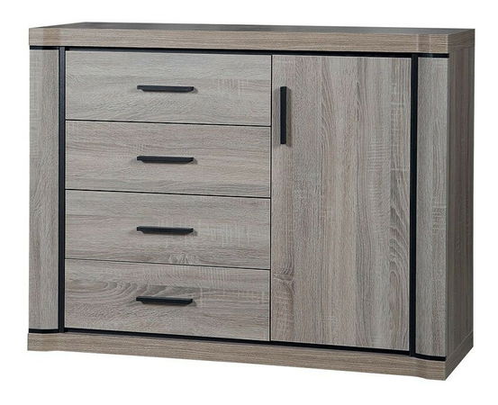 ZobrazitKomoda zkrášlí Váš obývací pokoj. Díky široké škále barevných provedení si jednoduše vyberete právě to, které se Vám bude hodit. Moderní komoda se vyznačuje velkým úložným prostorem a optimální hloubkou každé zásuvky. Promyšlené uspořádání jednotlivých prvků komody Vám umožní snadno a pohodlně uskladnit oblečení a jiné doplňky. Komoda je vyrobena z laminované lepenky odolné vůči malému poškození a poškrábání, díky čemuž si můžete být jisti, že vám bude spolehlivě sloužit po dlouhou dobu.
