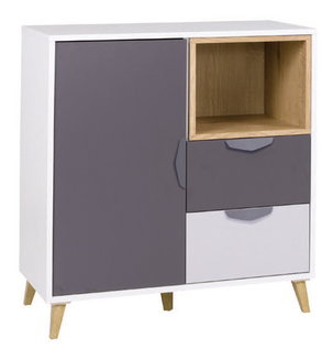 Komoda Yoda 10 (světlobéžová + dub olejovaný + eukalyptus)
