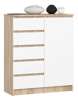 Komoda Rowan RL7 (bílá + bílá lesklá + šedá)