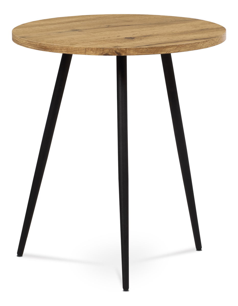 Trochu industriálního půvabu přinese do vašeho domova přístavný či minikonferenční stolek Afenen. Kulaté prkno v provedení divoký dub vyrobenou z MDF idylicky doplňují minimalistické kovové nohy v černé barvě které jsou zakončeny plastovými kluzáky proti poškození podlahy.
