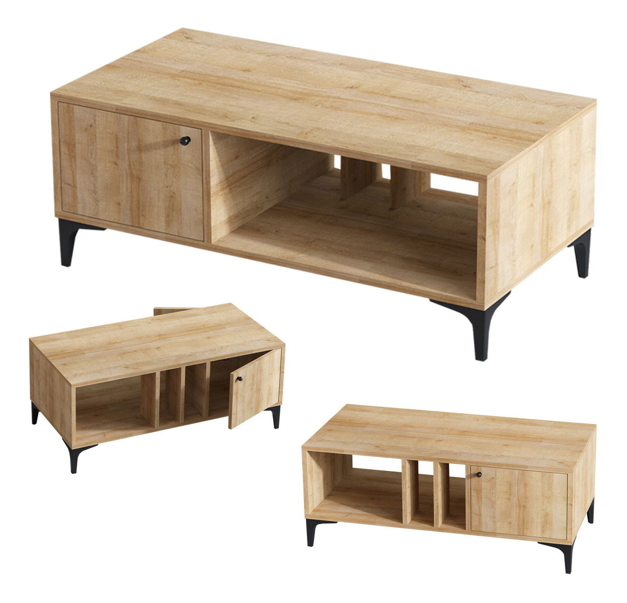 Konferenční stolek Rilla je ideálním doplňkem pro váš obývací prostor. S výškou 47 cm, šířkou 100 cm a hloubkou 50 cm má dostatek místa pro vaše oblíbené časopisy, knihy nebo občerstvení. Vyrobeno z kvalitní 100% melaminové desky, tento stolek je odolný a snadný na údržbu. Jeho moderní dubový design dokonale zapadne do každého interiéru. S Rilla konferenčním stolkem si užijete pohodlné odpoledne se svými přáteli nebo rodinou.