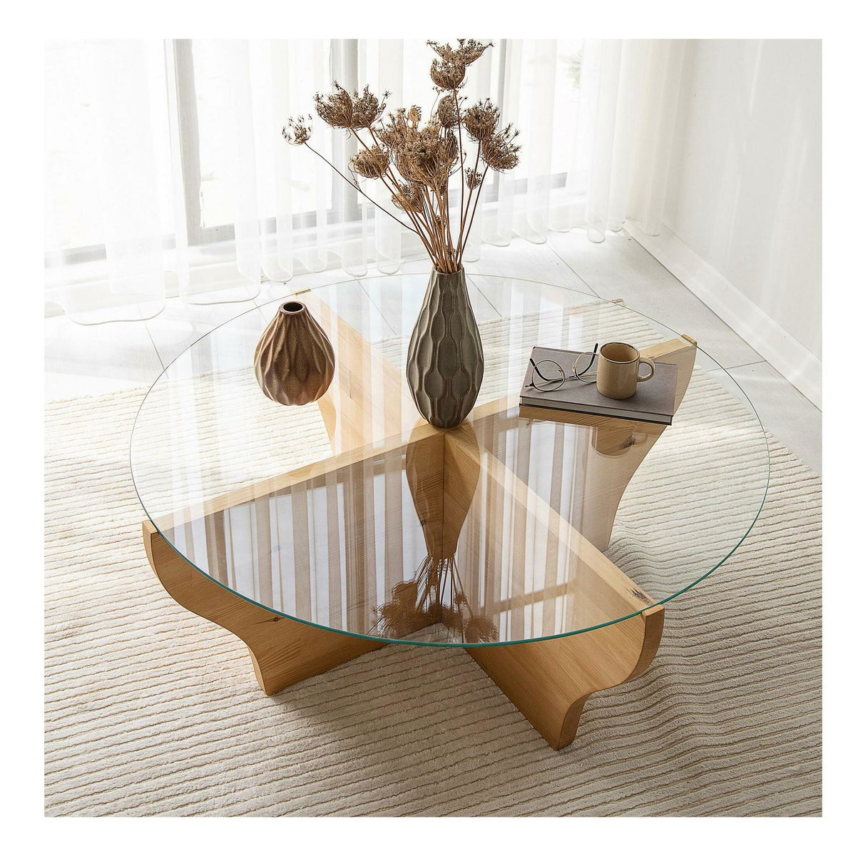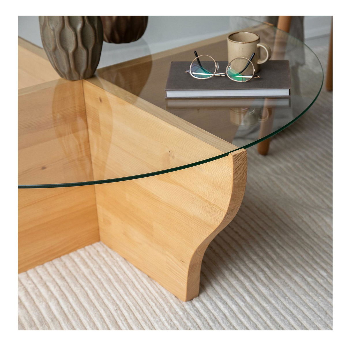 100% tepané sklo, konstrukce: 100% masivní dřevo