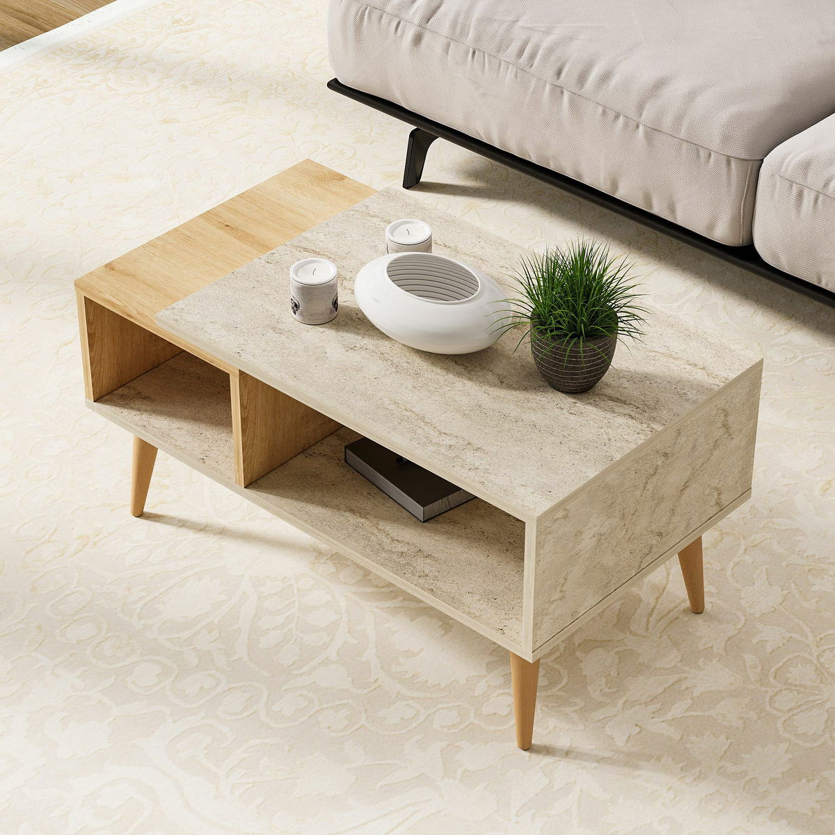 Konferenční stolek Antoneita (travertin + dub safírový)